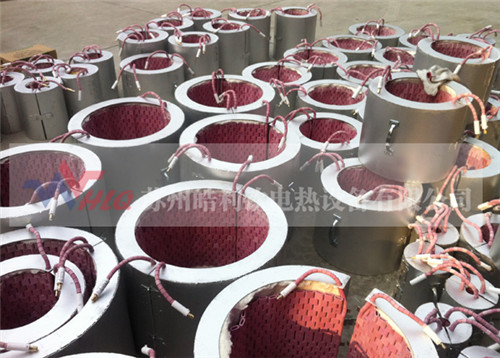 以履带式加热器作热源,配以保温材料及外壳,做成圈型对开式加热器,便于装卸,适用于中小型管道的局部加热,最高工作温度750℃。